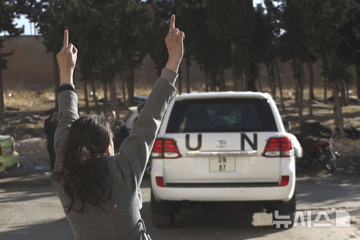UN 시리아 특사 차량에 손가락 욕하는 시리아 여성