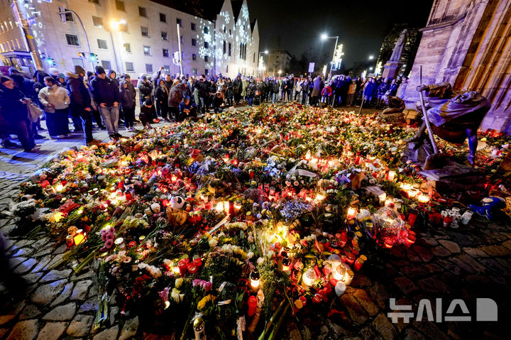 크리스마스 마켓 테러 희생자 추모하는 꽃다발과 촛불