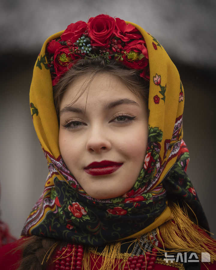 전통 의상 입고 크리스마스 축하하는 우크라 여성
