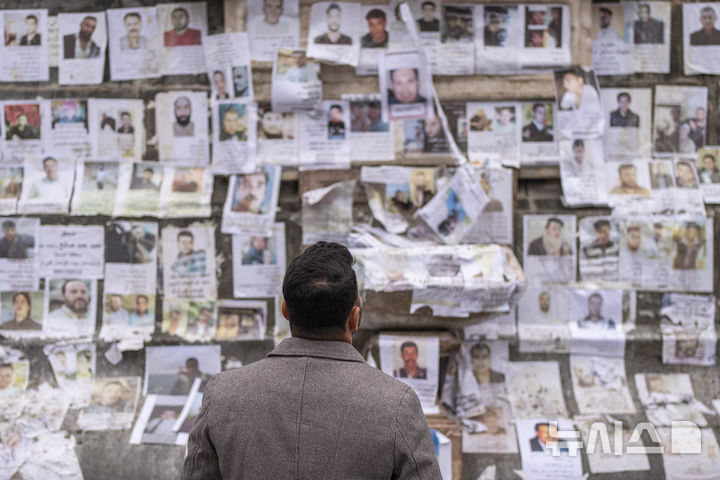 실종자 사진 바라보는 시리아 남성