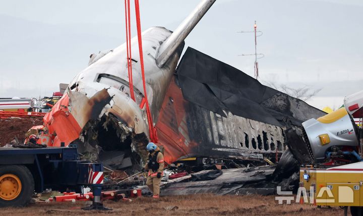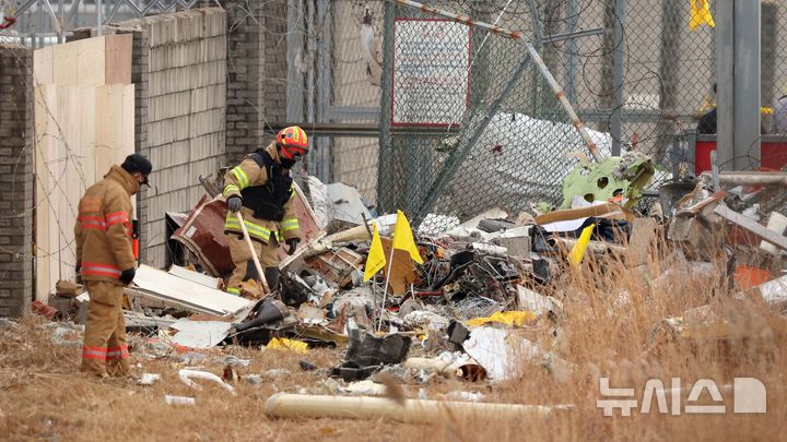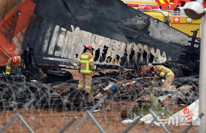 제주항공 여객기 잔해 수색하는 소방대원들