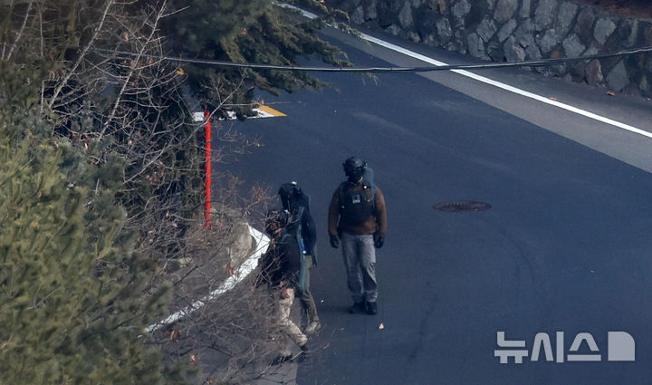 대통령 관저 통행로 오가는 경호처 관계자들