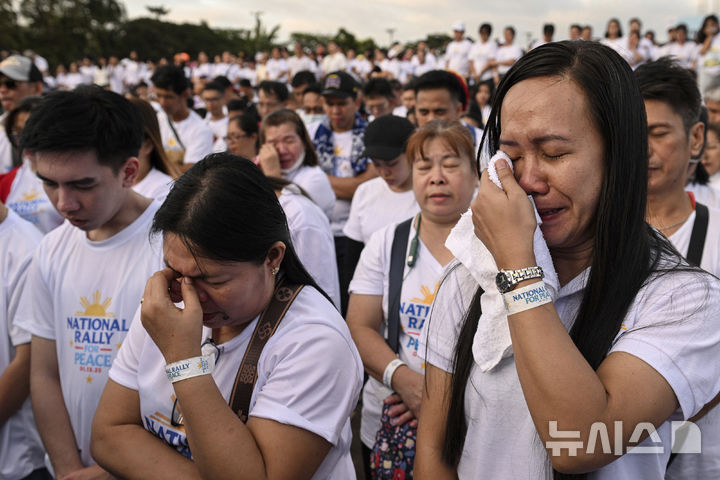 두테르테 탄핵 반대 집회서 눈물 흘리는 사람들