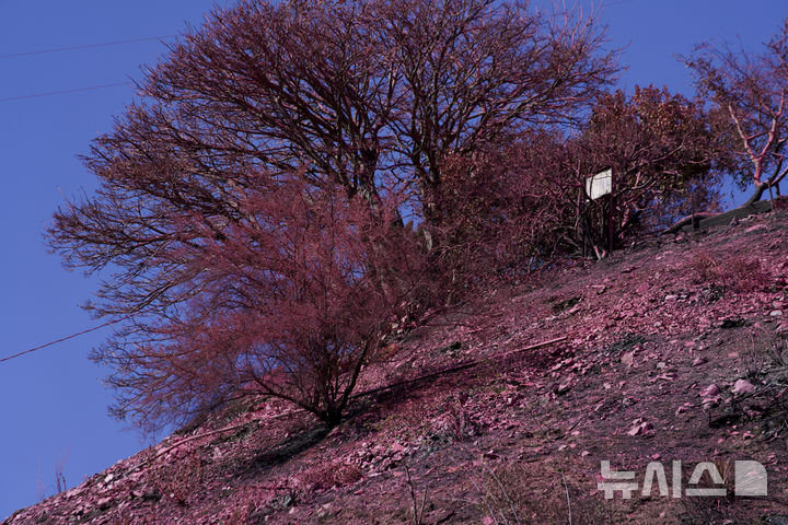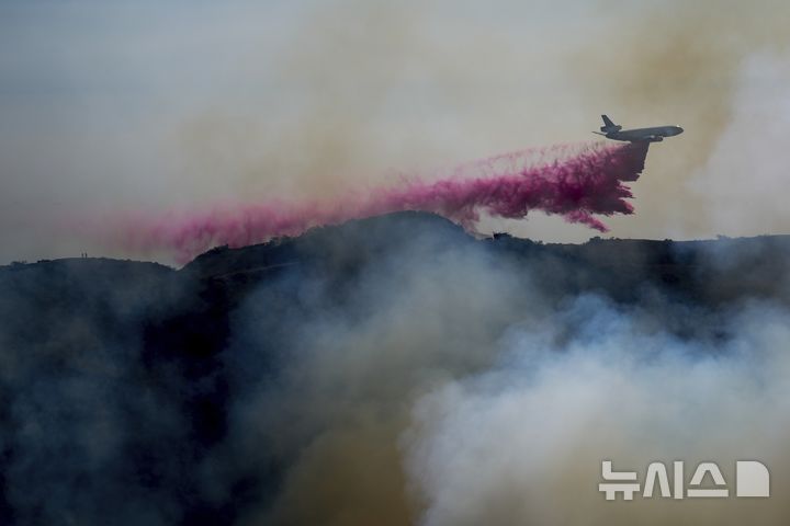 산불 현장 분홍색으로 물들이는 화재 지연제