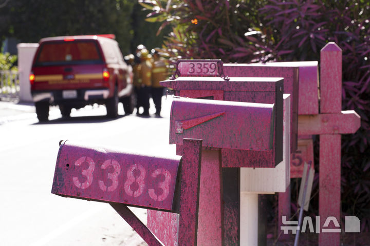 캘리포니아 산불 지역 우체통 뒤덮은 화재 지연제