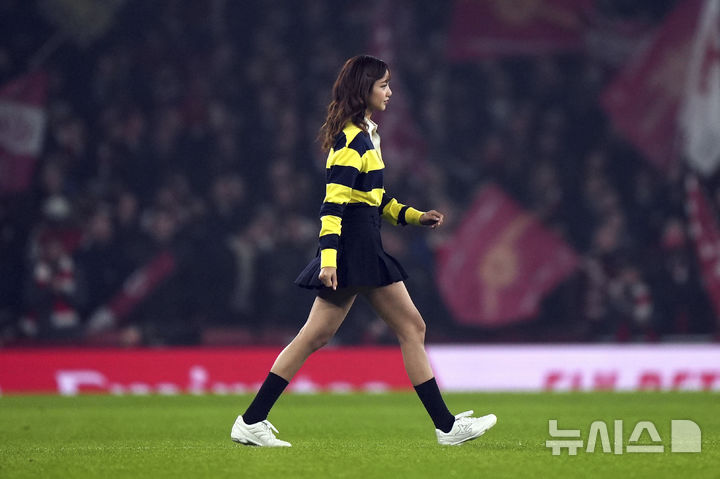 동전 토스 위해 경기장 들어서는 블랙핑크 리사
