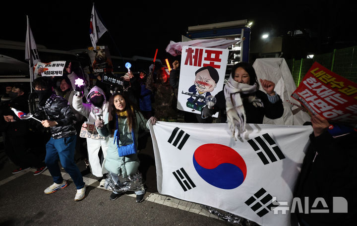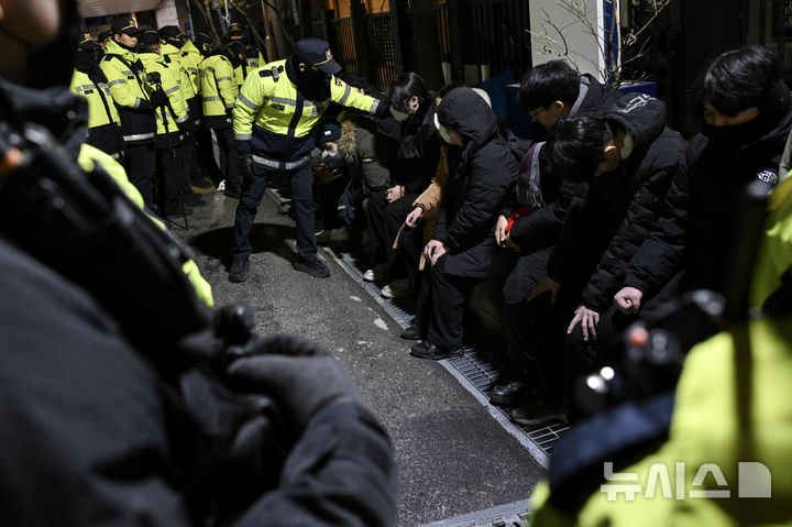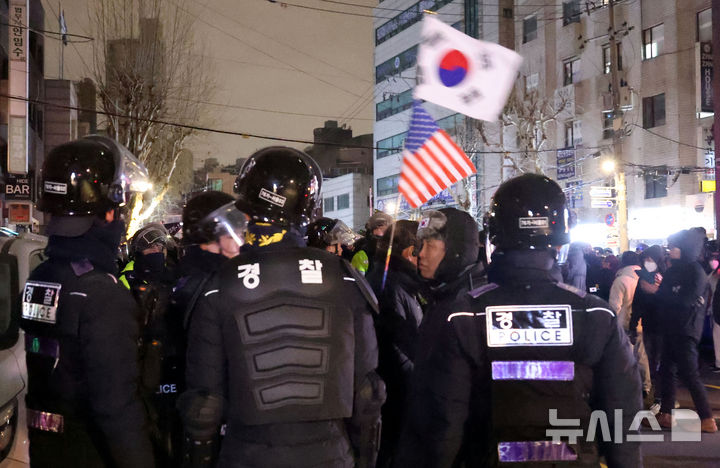 경찰과 대치 중인 윤석열 대통령 지지자들