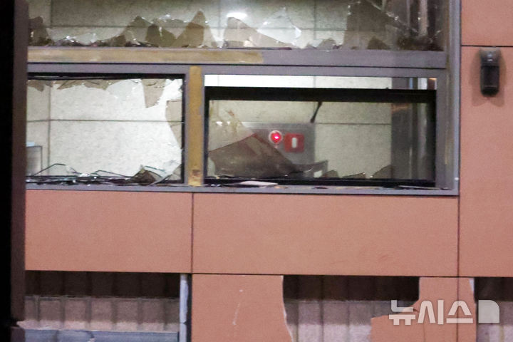 윤석열 대통령 지지자들에 의해 산산조각난 서부지법 유리창