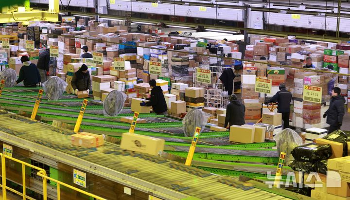 설 명절 소포 우편물 처리에 분주한 동서울우편물류센터