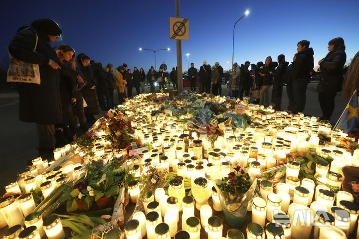 총격 희생자들 추모하는 스웨덴 사람들