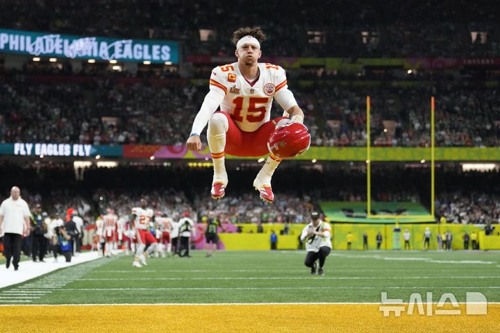 슈퍼볼 시작 전 몸 푸는 패트릭 마홈스