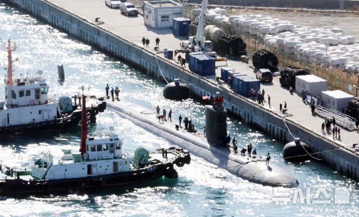 미 핵추진잠수함 '알렉산드리아함' 첫 입항