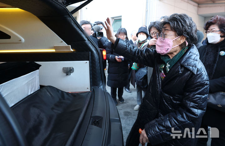 고 길원옥 할머니에게 마지막 인사하는 이용수 할머니