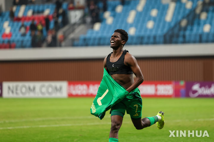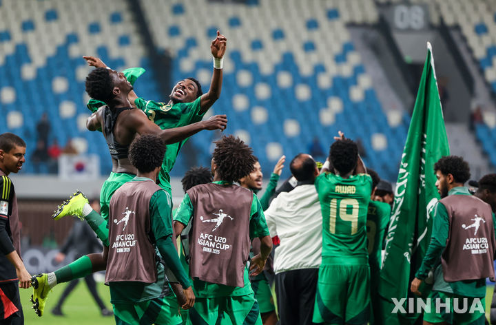 한국 꺾고 환호하는 사우디 선수들