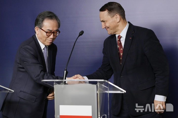 공동 기자회견 후 악수하는 한-폴란드 외교 수장