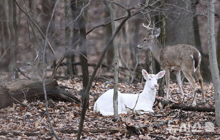 펜실베이니아 숲에서 발견된 알비노 암사슴