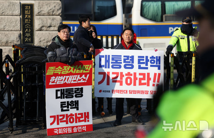헌재 앞 윤 대통령 탄핵 반대 릴레이 시위하는 국민의힘