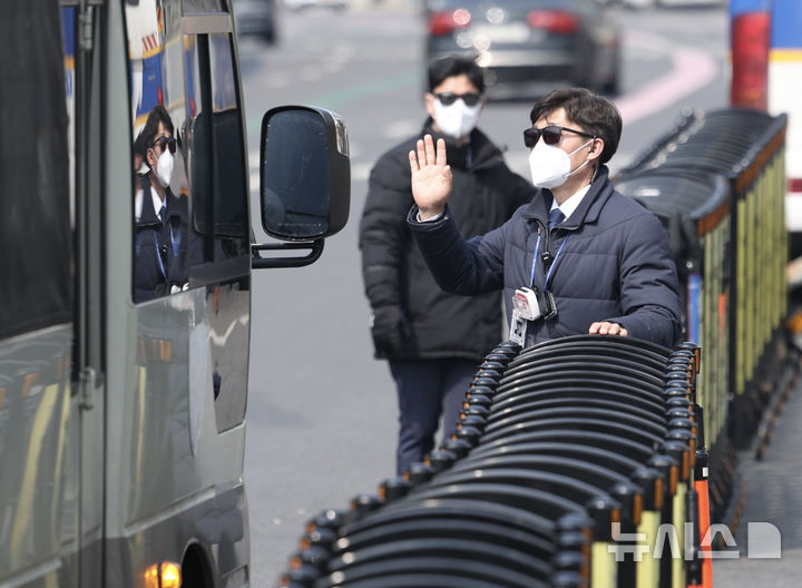 서부지검으로 들어서는 호송버스