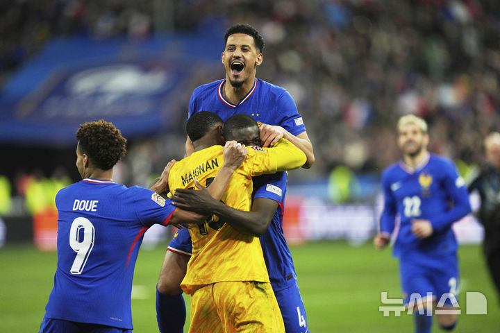 크로아티아 꺾고 환호하는 프랑스 선수들