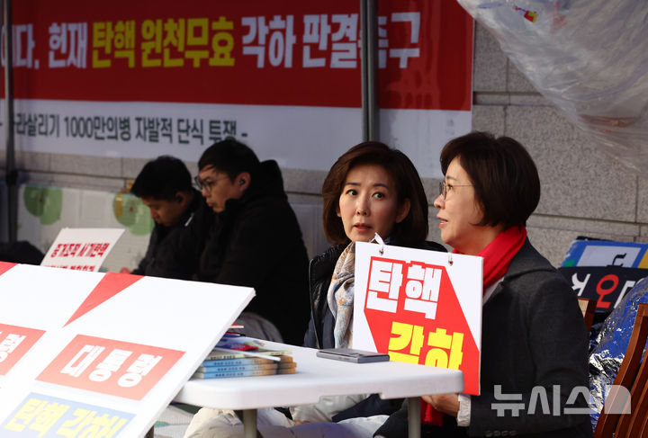 탄핵 각하 촉구 시위하는 나경원-이인선