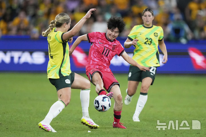 호주와 친선 경기, 공 다투는 지소연