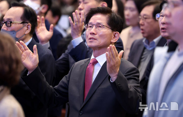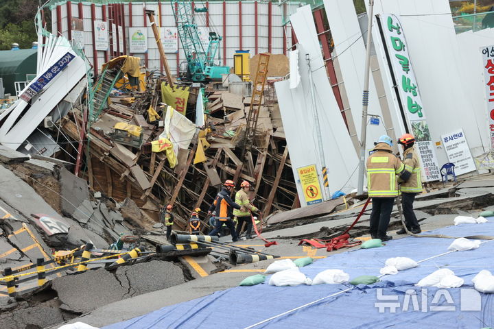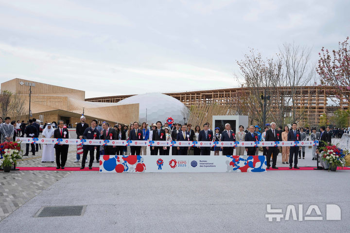 오사카 엑스포 개막 테이프 자르는 관계자들