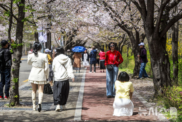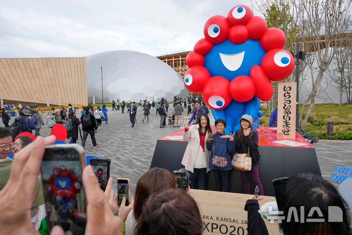 '먀쿠먀쿠' 앞에서 기념 촬영하는 엑스포 방문객들
