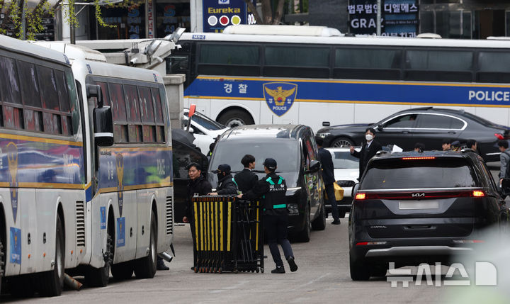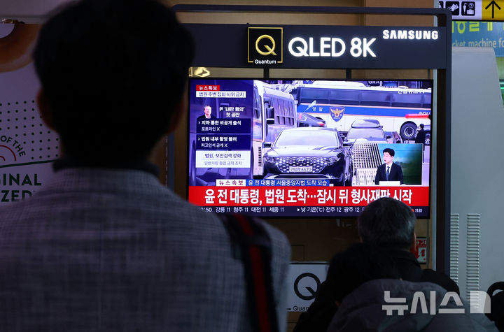 형사재판 출석하는 윤 전 대통령 모습 시청하는 시민들