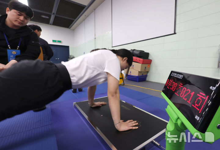 정자세 팔굽혀펴기하는 경찰 응시생들
