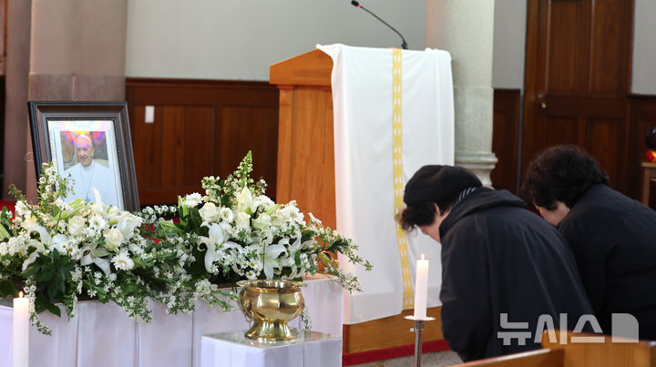 명동대성당에 마련된 故 프란치스코 교황 분향소