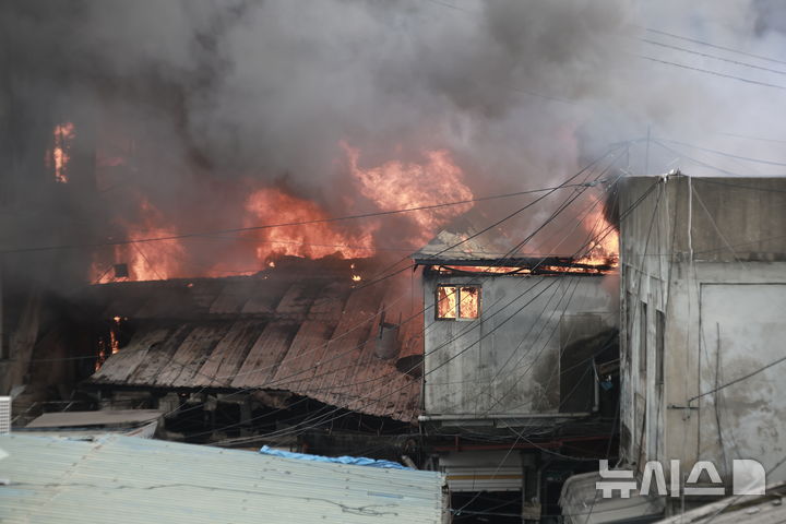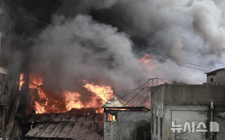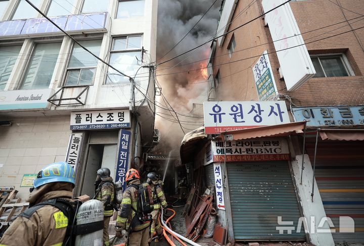 中 화학공장 폭발, 화재 진압하는 소방관들