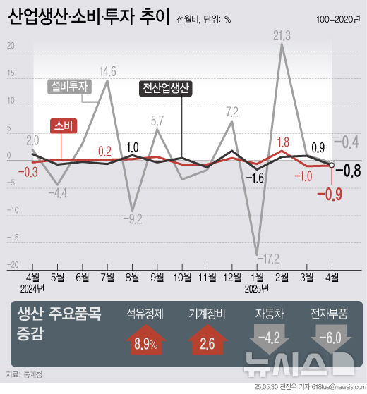 [그래픽] 4월 생산·소비·투자 '트리플 감소'