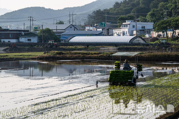 이양기로 모내기 하는 농민