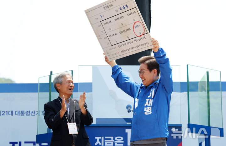 은사님께 '대선후보 성적표' 받는 이재명 후보