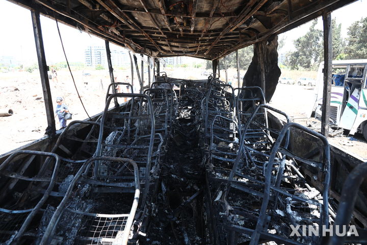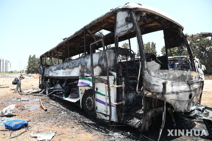 이란 공습에 전소된 이스라엘 버스