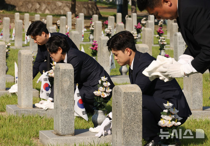 6.25 참전용사 묘비 정화활동 나선 김용태
