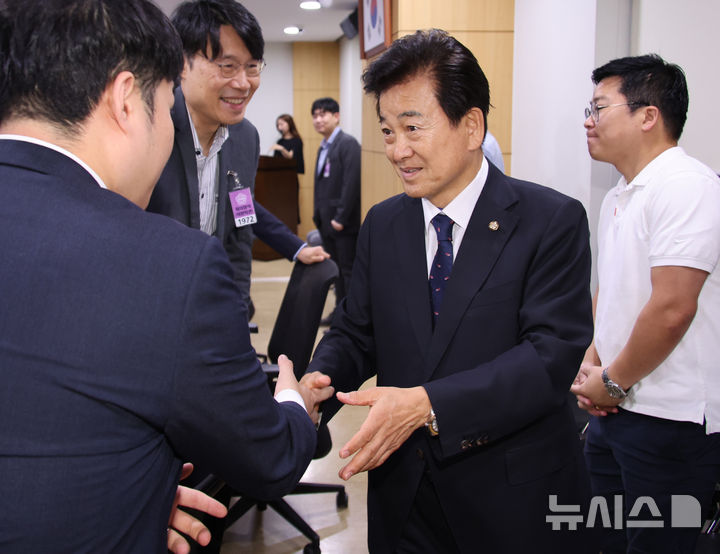 첨석자들과 악수하는 정동영 통일부 장관 후보자