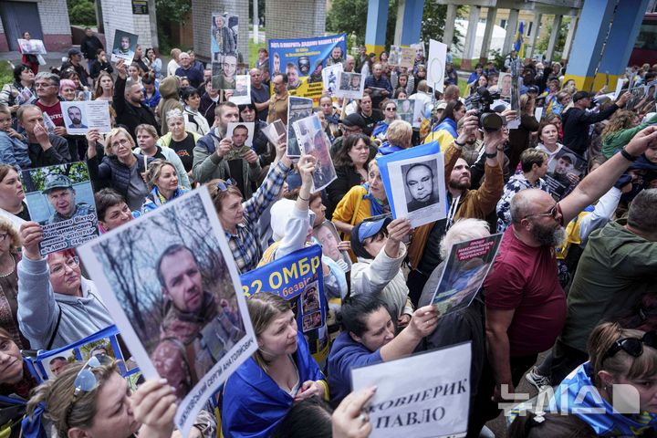 러-우 포로 교환, 실종 가족 사진 든 사람들