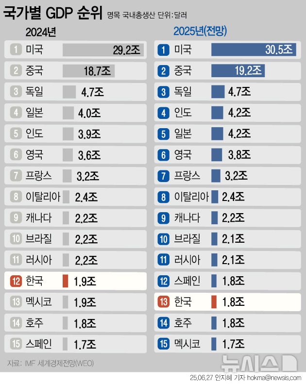 [그래픽] 한국 GDP 세계 12→13위 하락 전망