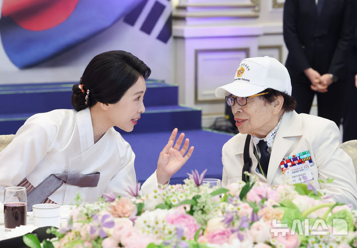 참전용사와 대화 나누는 김혜경 여사