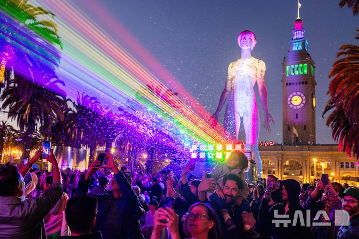 프라이드 행사 축하하는 무지개색 레이저