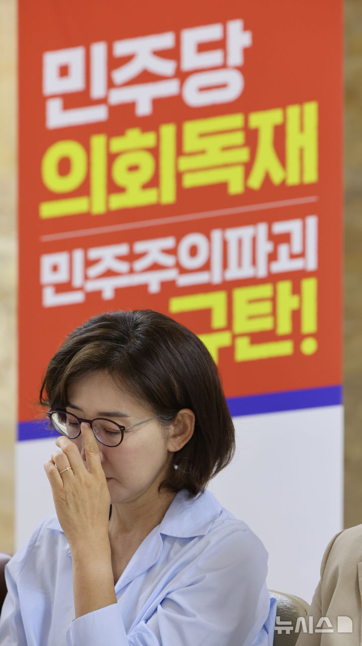 총리 인사 철회와 법사위원장 반환 요구 농성하는 나경원 의원