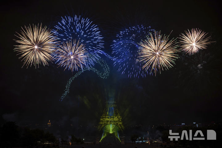 에펠탑 상공 수놓은 드론과 불꽃놀이