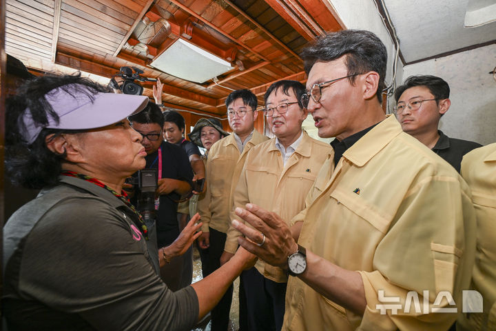 수해주민 위로하는 김민석 국무총리