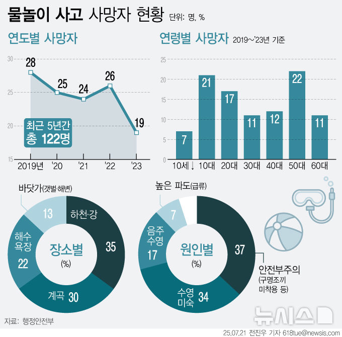 [그래픽] 물놀이 사망, 최근 5년간 122명…7월 말 최다