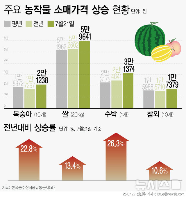 [그래픽] 수박 1통에 3만1000원 돌파…폭우로 농축산 물가↑