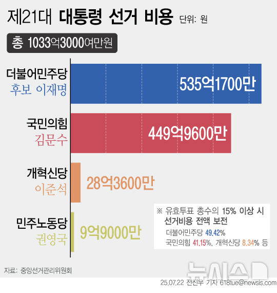 [그래픽] 21대 대선서 민주 535억·국힘 450억 사용…전액 보전