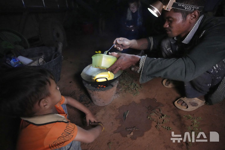 임시 대피소에서 음식 만드는 캄보디아 주민들