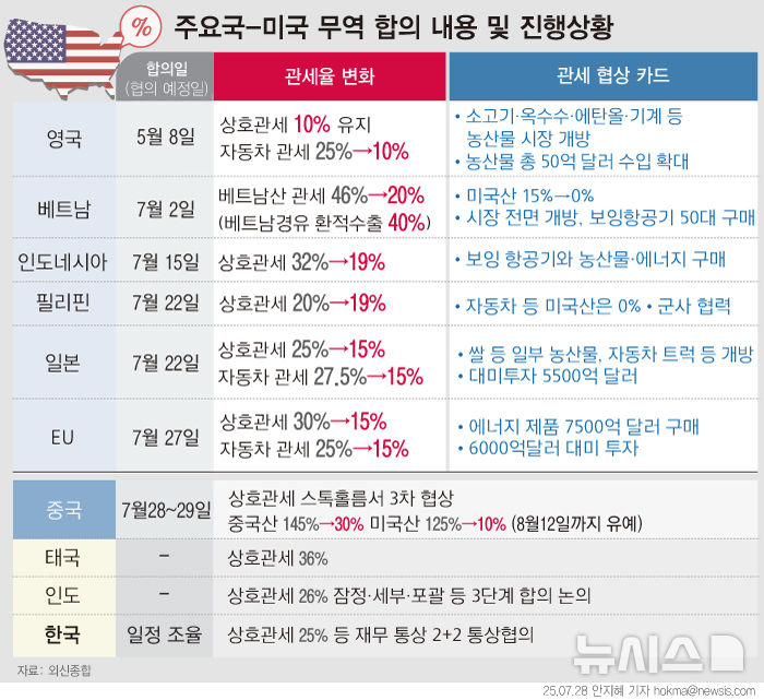 [그래픽] 주요국-미국 무역 합의 내용 및 진행 상황