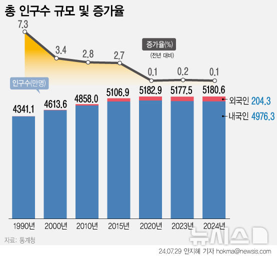 [그래픽] 외국인 인구 200만명 첫 돌파…총인구의 4%